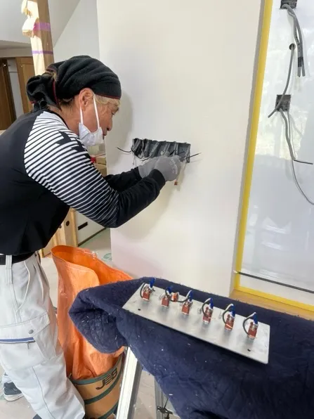 電気屋さんが分電盤、スイッチ、コンセント取り付けしています。